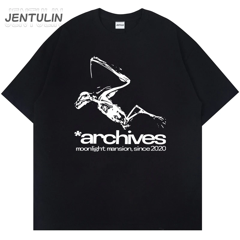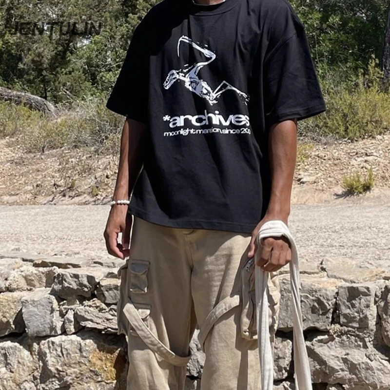 Fashion Summer Streetwear Men Tshirt Aesthetic Graphic Print Short Sleeve Clothing Punk Cotton Hip Hop Tees Korean Tops Y2K Goth